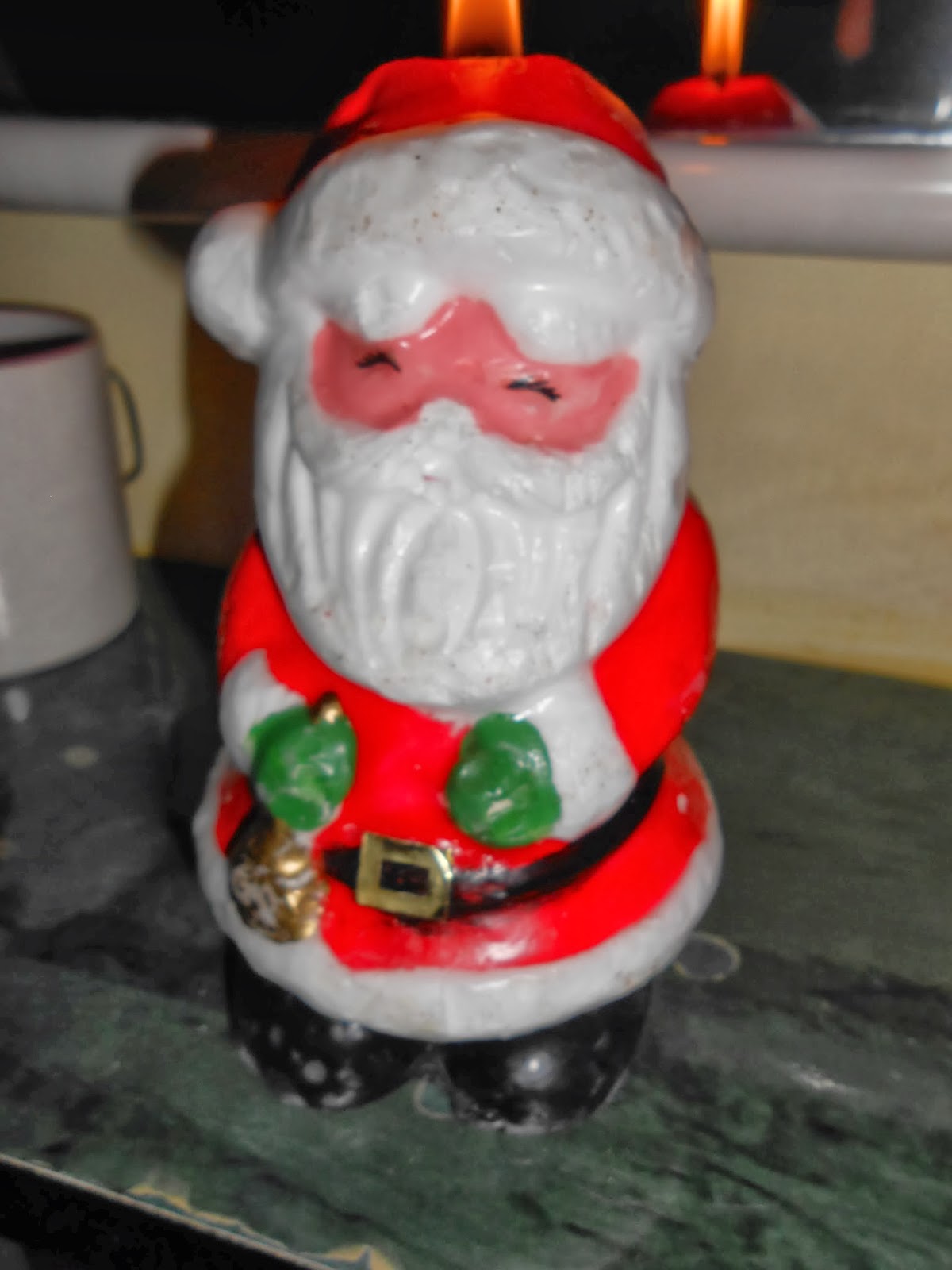Porta candela con figura di Babbo Natale sulla slitta, molto carina eheh
