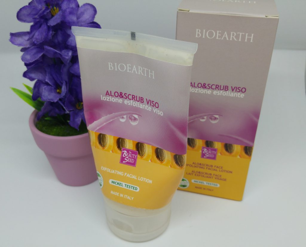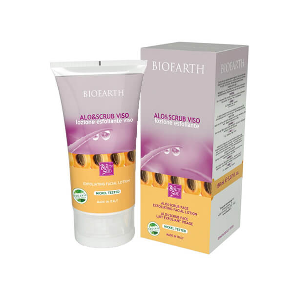 Alo&Scrub Viso Bioearth è uno scrub specifico per il viso a base di aloe vera, olio di calendula, rosa canina ed estratti vegetali biologici. Per una pelle purificata, luminosa e morbida.
