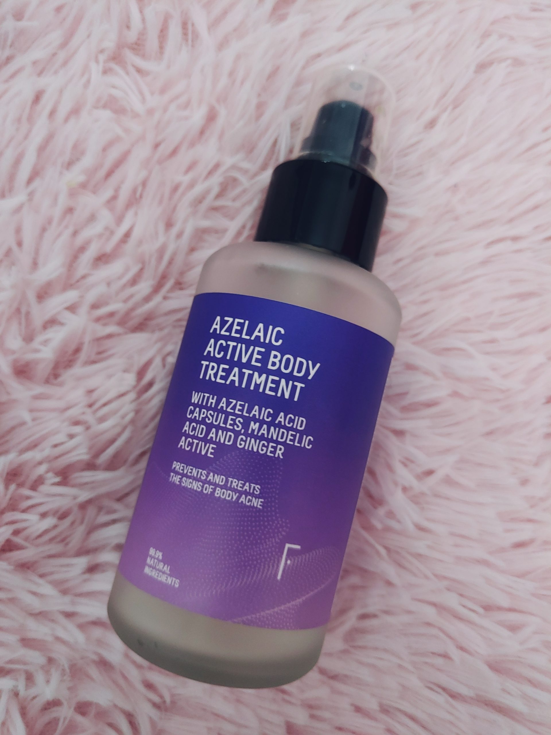 Avendo la pelle grassa e soffrendo di acne a volte mi ritrovo ad avere brufoletti anche sulla schiena, così ho voluto provare l’Azelaic Active Body Serum, un trattamento naturale in gel che previene e tratta i segni dell’acne di tutto il corpo.