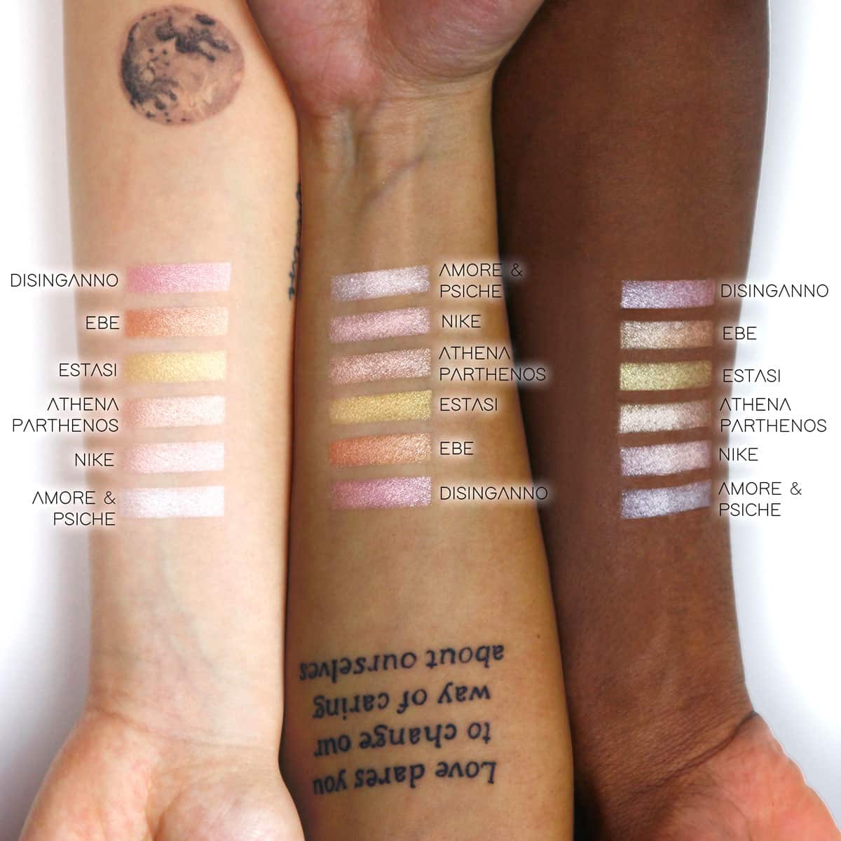 I tre nuovi colori sono l’evoluzione estiva dei precedenti, con nuances più calde perfette per brillare sotto il sole. Questi illuminanti fondono insieme una perla di base con una perla riflettente, capaci di creare un connubio perfetto di luce.