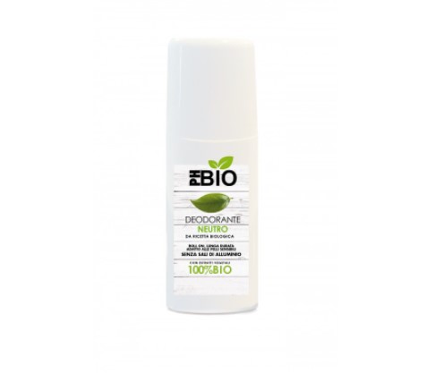 Deodorante roll-on di PhBio, profumazione neutra, senza sali di alluminio, contrasta la formazione di batteri e i cattivi odori, adatta a pelli sensibili.