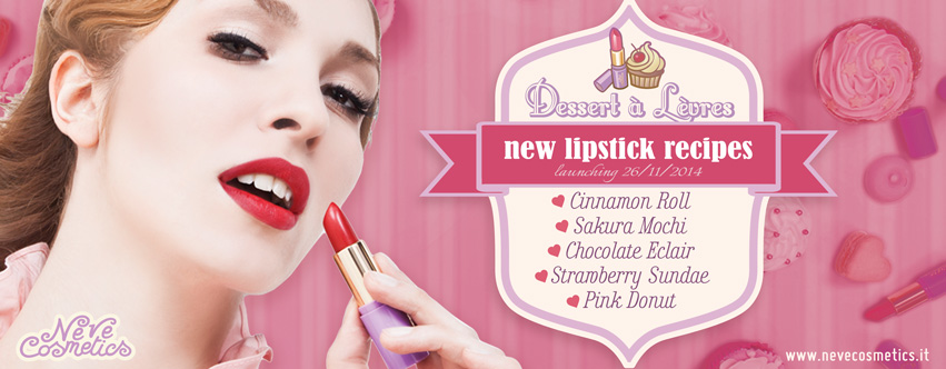 I rossetti Dessert à Lèvres by Neve Cosmetics debutteranno mercoledì 10 aprile su www.nevecosmetics.it