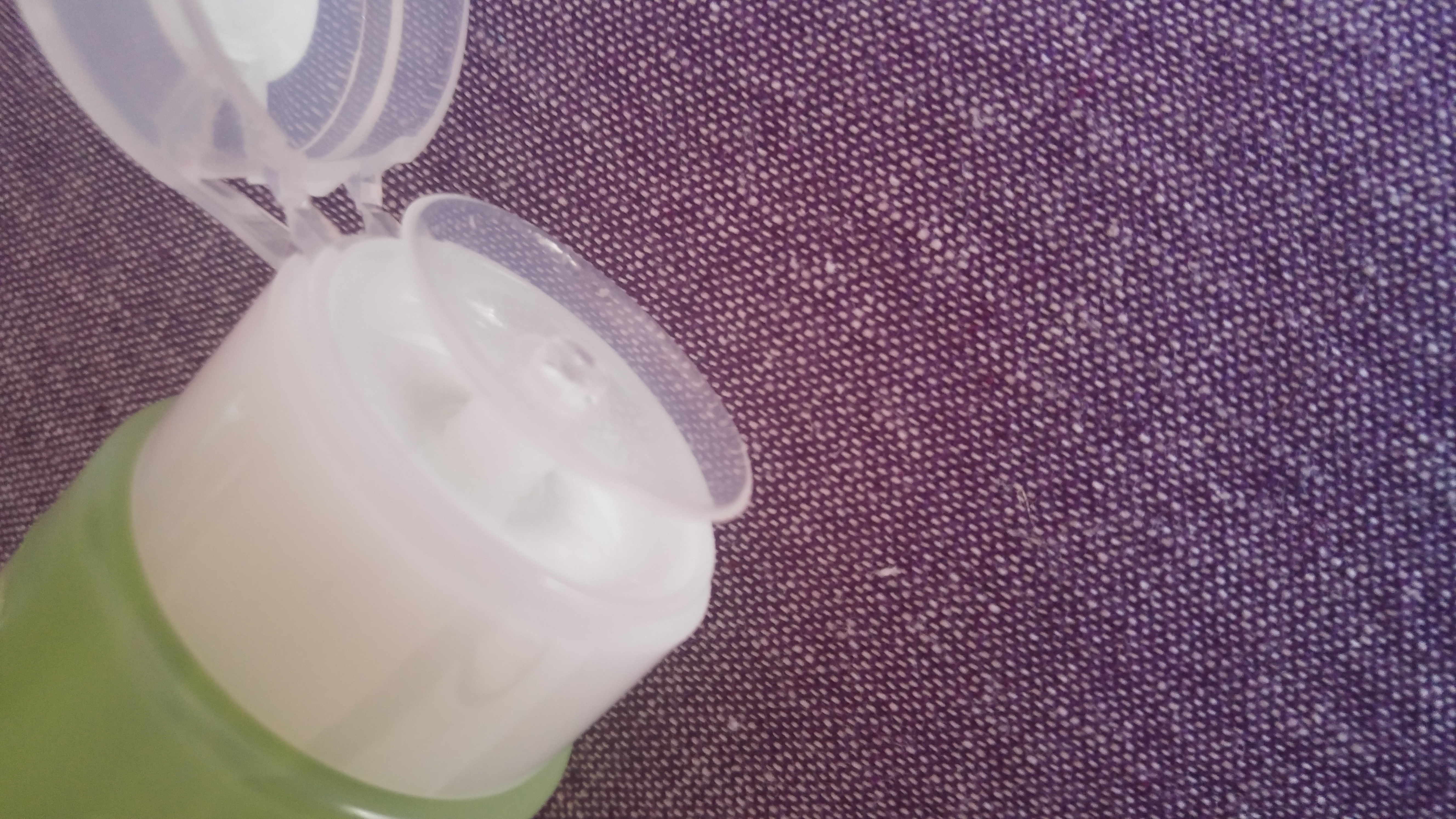 Il prodotto è contenuto all’interno di un flaconcino in plastica rigida verde/trasparente con un piattino dosatore che si trova sul tappo. E’ veramente molto comodo da usare perchè basta posizionare un dischetto di cotone sul piattino, e premere leggermente verso il basso fino ad ottenere la giusta quantità di prodotto. In questo modo il dischetto si impregnerà automaticamente, evitando sprechi.