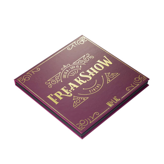 Freakshow si presenta impreziosita anche nel suo packaging esterno che presenta lo stesso dualismo cromatico dei prodotti al suo interno: prugna opaco di fondo ricamato con dettagli cromatici gold.