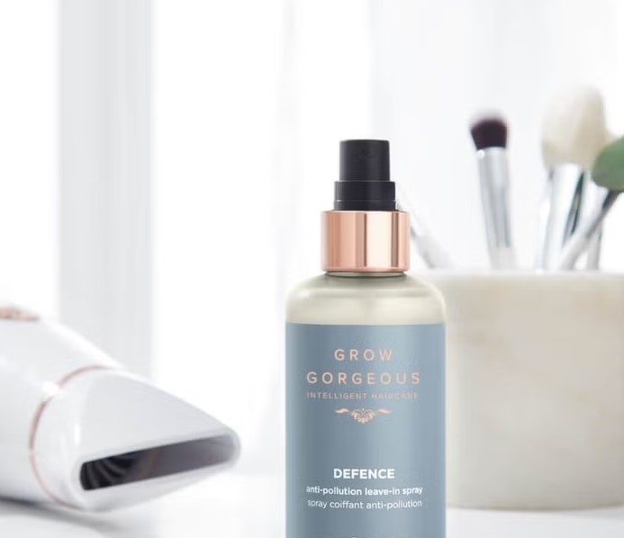 Lo Spray Capelli Defence Anti-Inquinamento di Grow Gorgeous, aiuta a proteggere i capelli dall’inquinamento atmosferico, dal calore e dallo schiarimento del pigmento. Uno spray leggero che non unge.