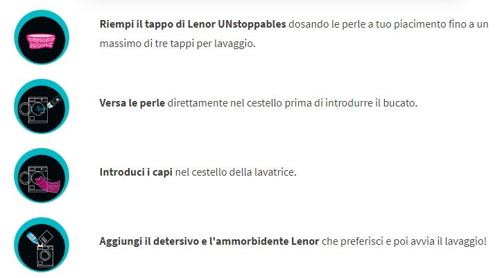 Non dovete far altro che riempire il tappo di Lenor UNstoppables dosando le perle a vostro piacimento ma vi assicuro che ne bastano poche. Se proprio volete esagerare non più di tre tappi per lavaggio.