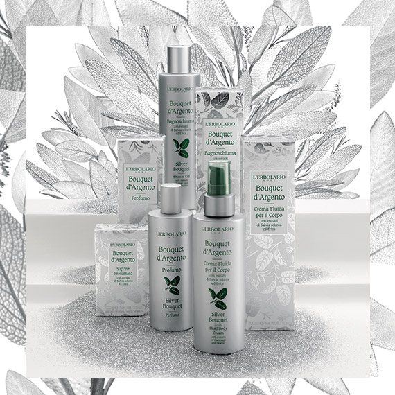 Per celebrare la purezza e la bellezza mai ostentata di questo metallo così prezioso, L’Erbolario ha creato una linea profumata Bouquet d’Argento, un vero e proprio “bouquet” con estratti di piante, le cui foglie hanno effettivamente delle affascinanti sfumature argentate e sono ricche di attivi in grado di idratare, tonificare e proteggere la pelle, anche quella più delicata.