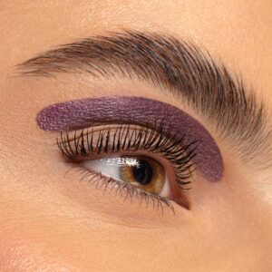 Un viola bruciato shimmer con riflessi ghiaccio. Luce fredda e base calda, brillantezza e mistero.