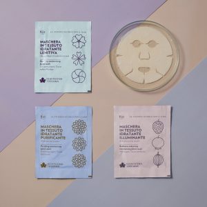 Le tre maschere idratanti in tessuto di cellulosa naturale (idratante-lenitiva alle mucillaggini di malva bio toscana, idratante-illuminante ai frutti rossi bio toscani e idratante-purificante all’elicriso bio toscano) veicolano al meglio le sostanze emollienti e antiossidanti di cui sono imbevute nell’epidermide, mentre la loro azione è potenziata dal naturale calore sprigionato dalla pelle. Contengono acido ialuronico a peso molecolare differenziato e mirate combinazioni di principi attivi (bisabololo, pantenolo, allantoina, Vit. E e C, acido ferulico, biotina) per una pelle compatta e idratata.
