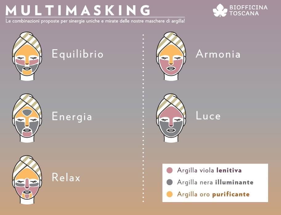 Argilla o Tessuto? Malva, frutti rossi o elicriso bio toscani? Viola, nera oppure oro? Applicazione all-over o multimasking? Possiamo scegliere la nostra maschera in base alle peculiarità ed alle esigenze della pelle in ogni stagione e in ogni momento dell’anno.