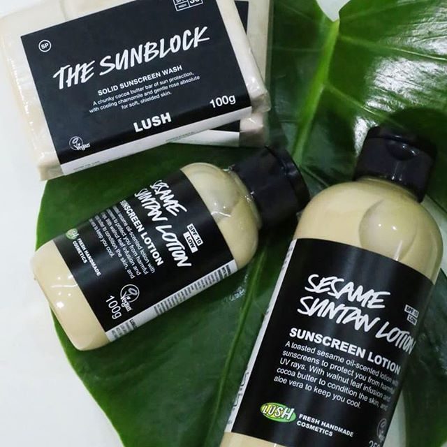 Unendo ingredienti come l’olio di sesamo, l’olio essenziale di olibano e la polvere di calamina a tre filtri solari sintetici ma sicuri, Lush ha realizzato dei prodotti piacevoli da usare e che profumano di dolci biscotti o freschi agrumi.