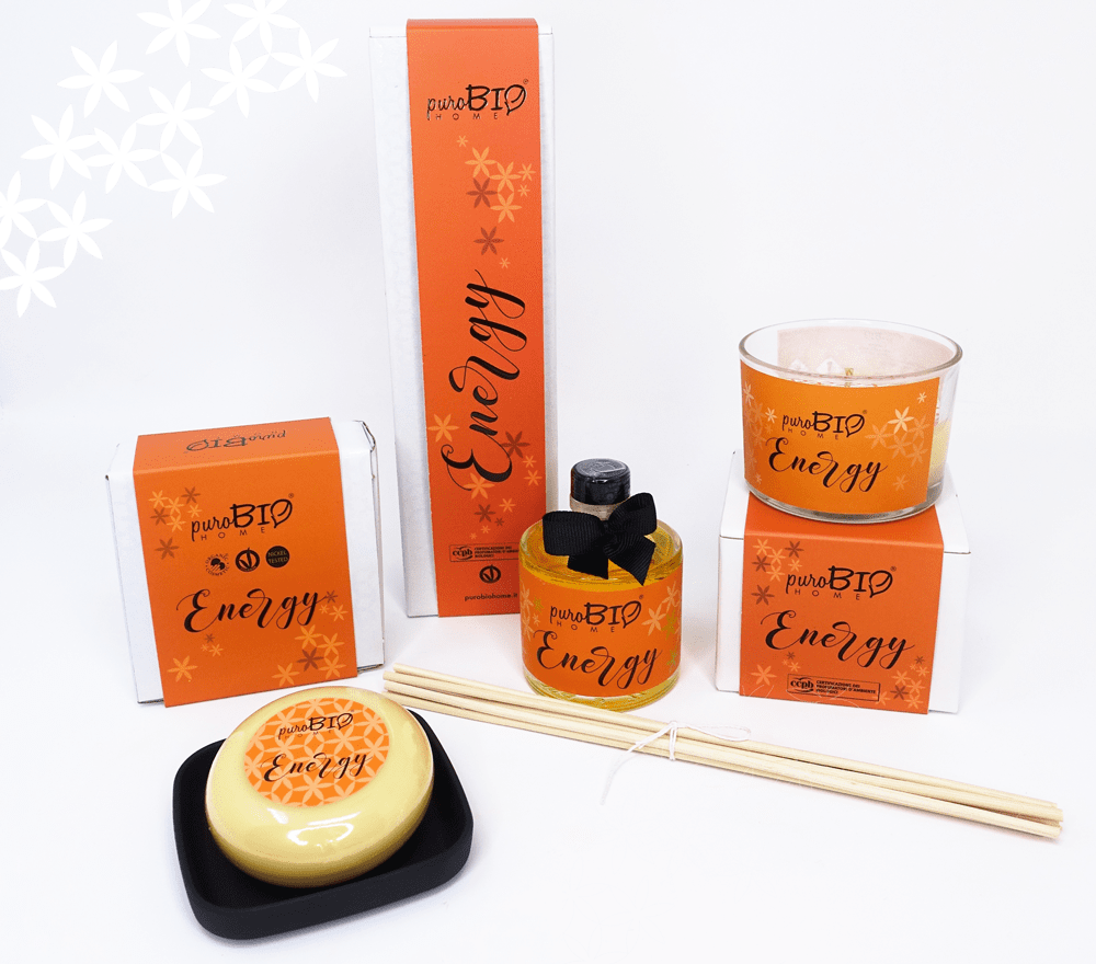 Le profumazioni della linea PuroBIO Homesono state divise in due categorie: Energizzanti e Rilassanti.
