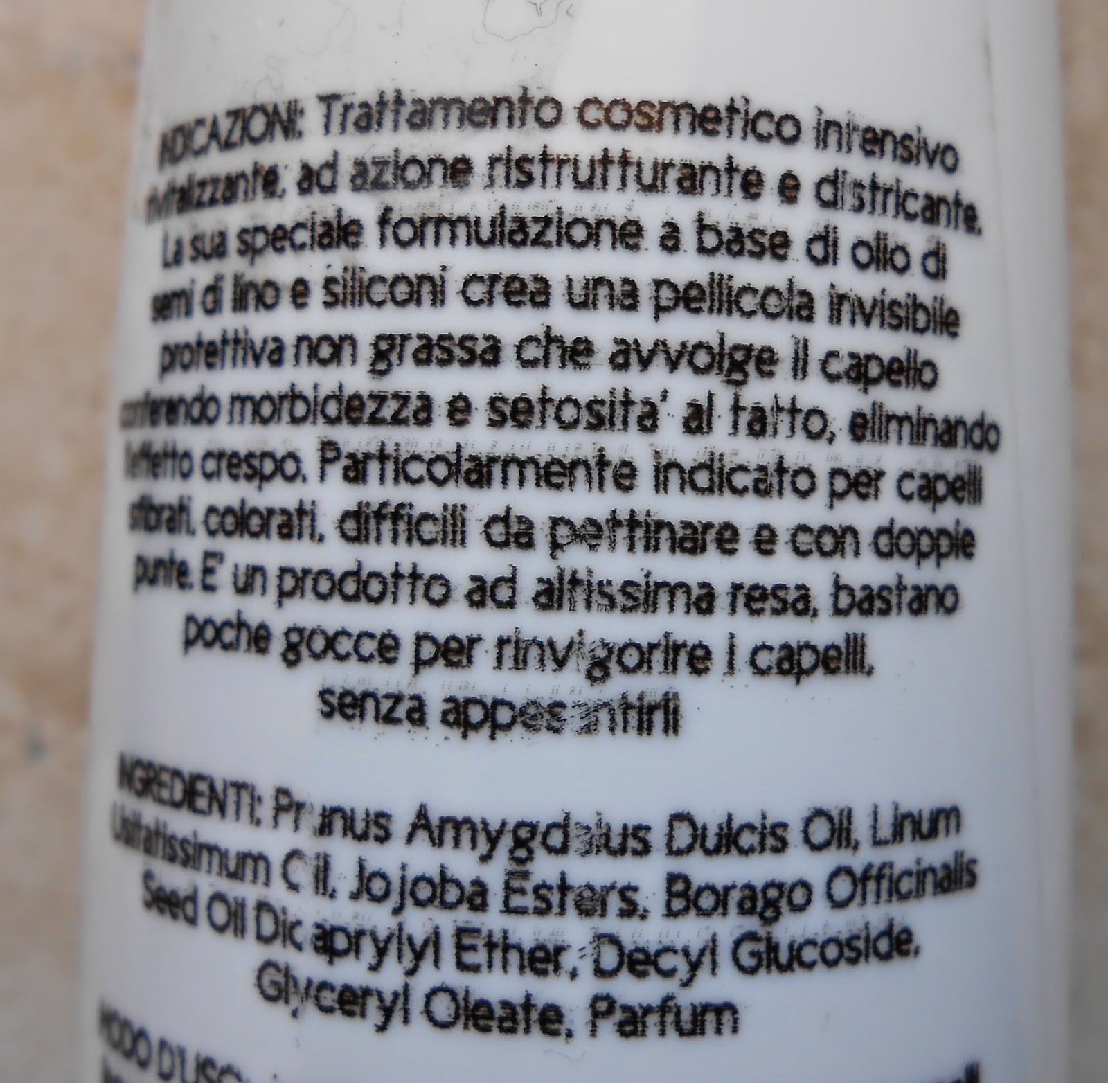 Trattamento cosmetico intensivo rivitalizzante ad azione ristrutturante e districante. La sua speciale formulazione a base di olio di semi di lino crea una pellicola invisibile protettiva non grassa che avvolge il capello, conferendo morbidezza e setosità al tatto, eliminando l’effetto crespo. Particolarmente indicato per capelli sfibrati, colorati, difficili da pettinare e con doppie punte. E’ un prodotto ad altissima resa, si consiglia un dosaggio molto basso.