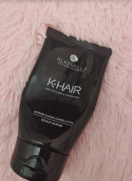 Io ho utilizzato lo Scrub Cuoio Capelluto della linea K-Hair Alkemilla. La sua formula contiene all’interno estratti di Lino, Lampone, Limone, Cocco, Ribes Nero e Mirtillo che nutrono a fondo i capelli; Mango e Passiflora con azione lenitiva e protettiva; Pantenolo dalle proprietà idratanti; Mentolo dall’azione rinforzante e Acido Glicolico che esercita un’azione esfoliante.