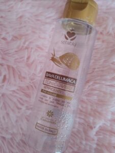 Il tonico è contenuto all’interno di un flacone in plastica trasparente, non vi è profumazione all’interno ma sappiate che la bava di lumaca si fa sentire.