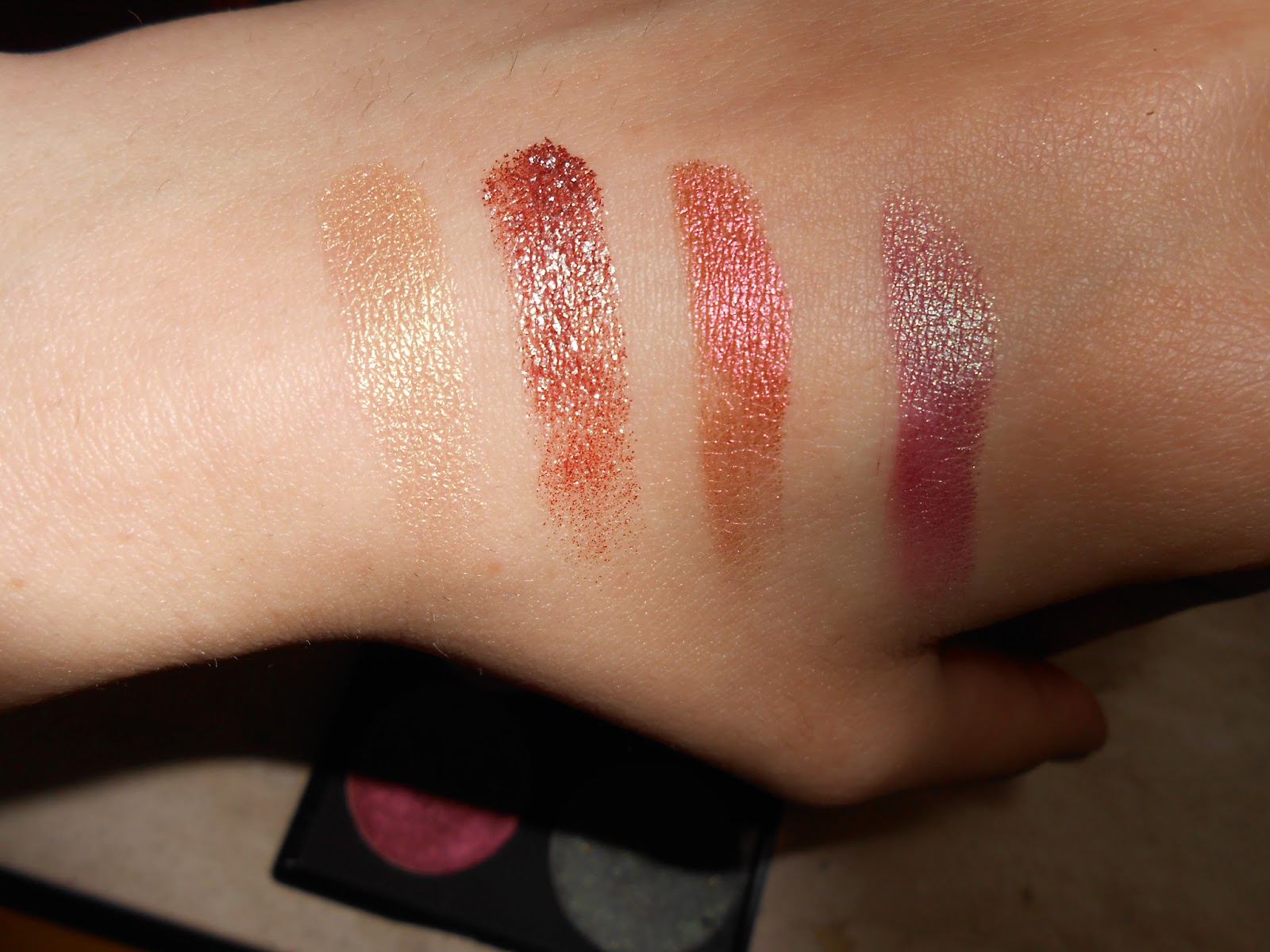 Vi faccio vedere uno swatch anche se è difficilissimo cogliere le diverse sfumature di questi meravigliosi ombretti.