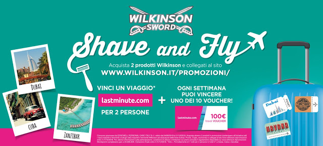 Dal 4 giugno al 21 ottobre acquistando due rasoi Wilkinson, avrete la possibilità di partecipare al concorso “Shave and Fly”. Ogni settimana potrete vincere un voucher viaggio da 100€ e in più partecipare all’estrazione finale di un viaggio per 2 persone a Cuba/Zanzibar/Dubai.